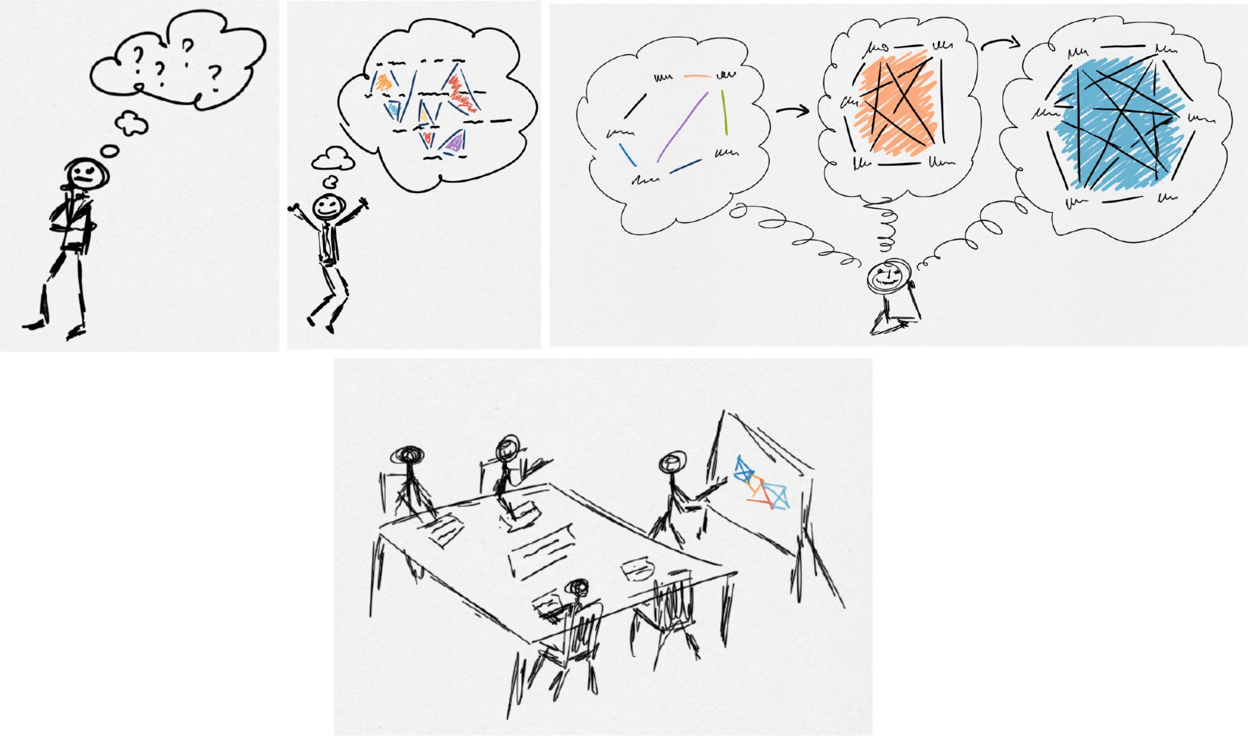 The combinatory lab of mind is a process that implements applied complexity science and algebraic topology through integrative dynamics thinking. I am working on a skillset and tools for building the playground structure for new ideas based on integrative dynamics thinking and relational thinking. It is devised as a training session and relational thinking exercises for modern knowledge workers, designers, and innovators and can be very broadly categorized into the field of Integration and Implementation Sciences. As the quote from my article in the book “Uncertainty: Making Sense of the World for Better, Bolder Outcomes“ says "... Reconstructing the complex present provides the foundation for the playground on which we can build the desirable future and mitigate uncertainty.“